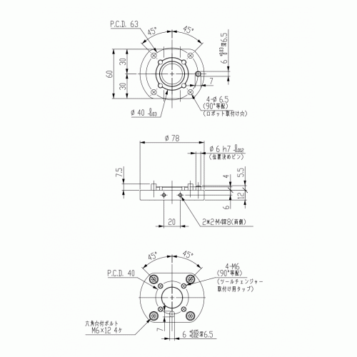 ツールチェンジャーOX-10Bを多関節ロボットへ取付ける変換ブラケットです。