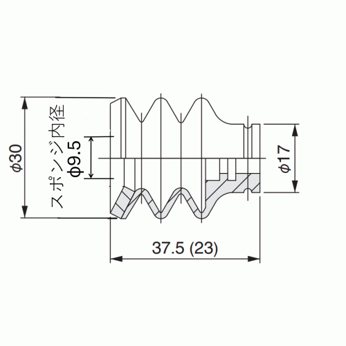 通常品(スポンジ内径φ15mm)に対し、当該商品は内径がφ9.5mmとなります。